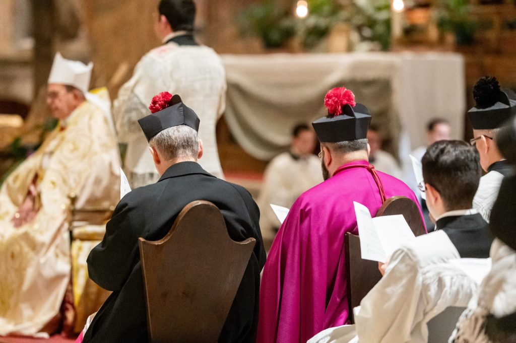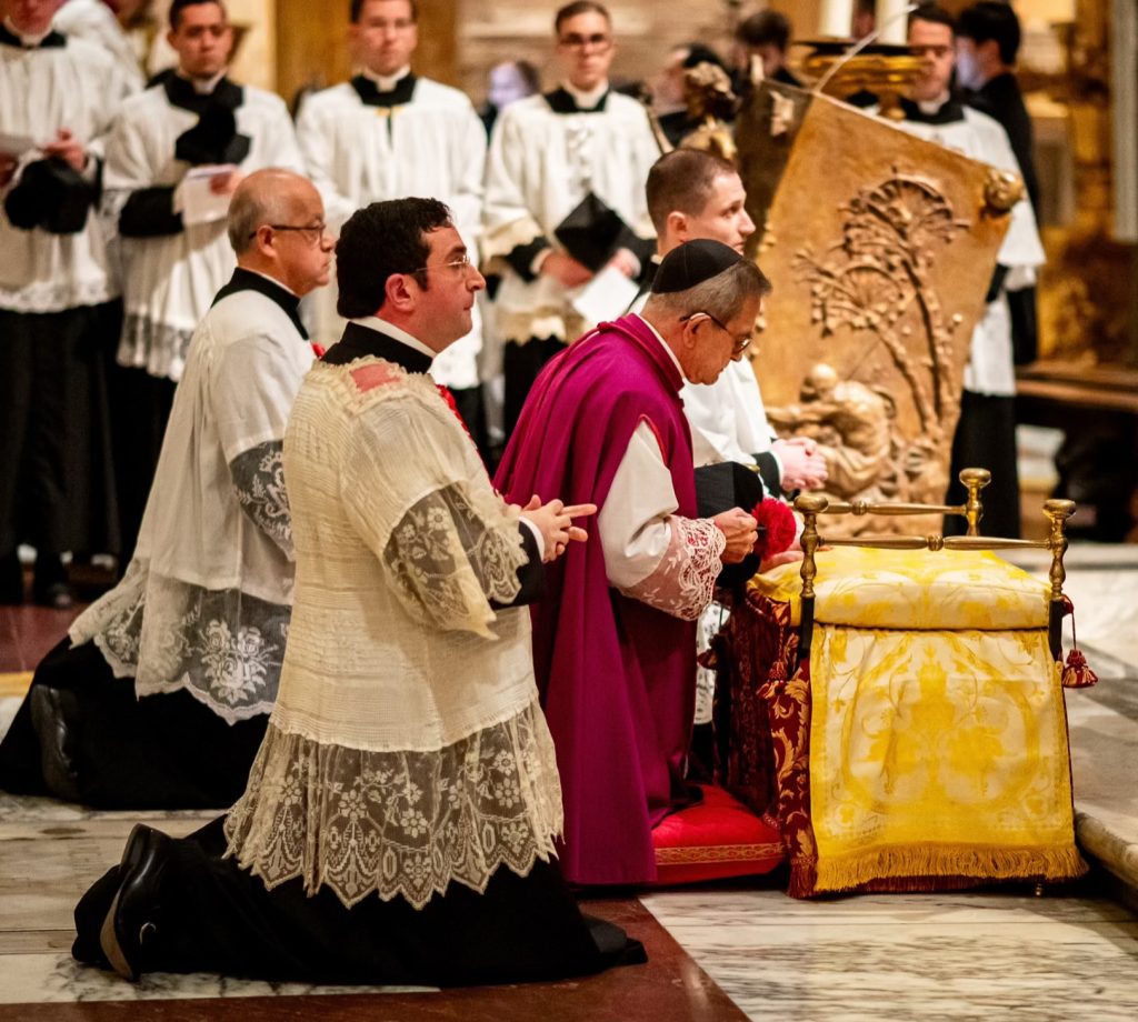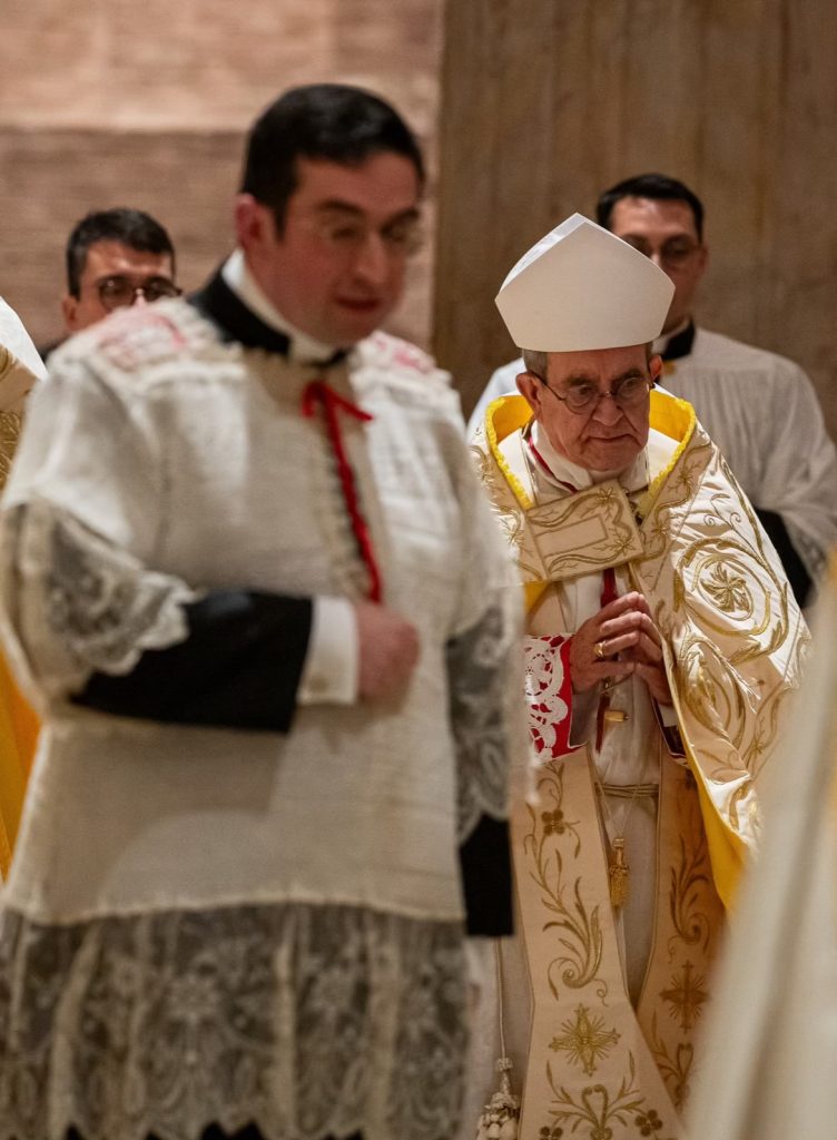 All’altare della Cattedra abbiamo cantato il Pater, il Tu es Petrus e l’Oremus pro Pontifice con i rispettivi oremus ed l’antifona marina dell’Avvento Alma Redemptoris Mater.