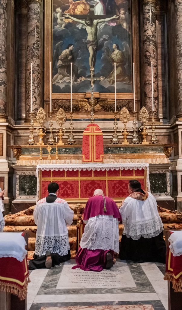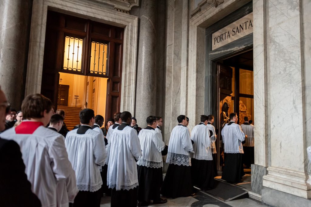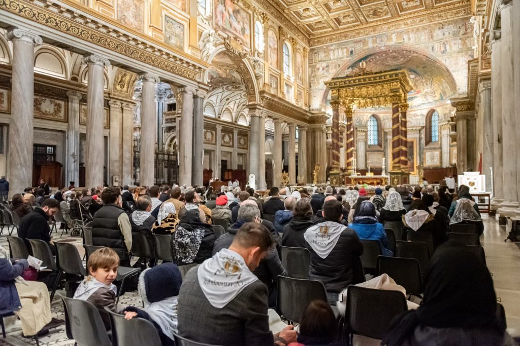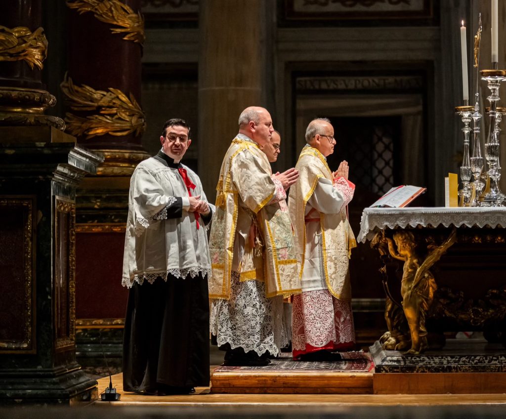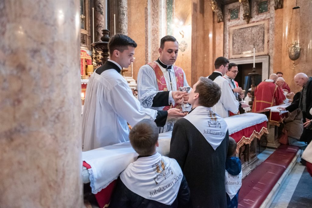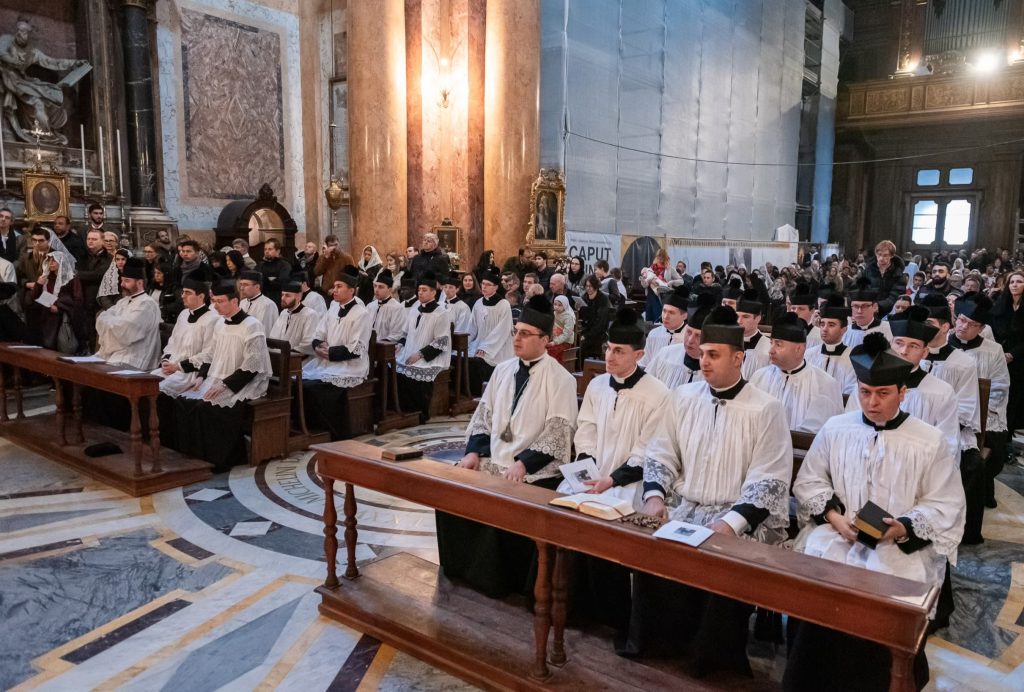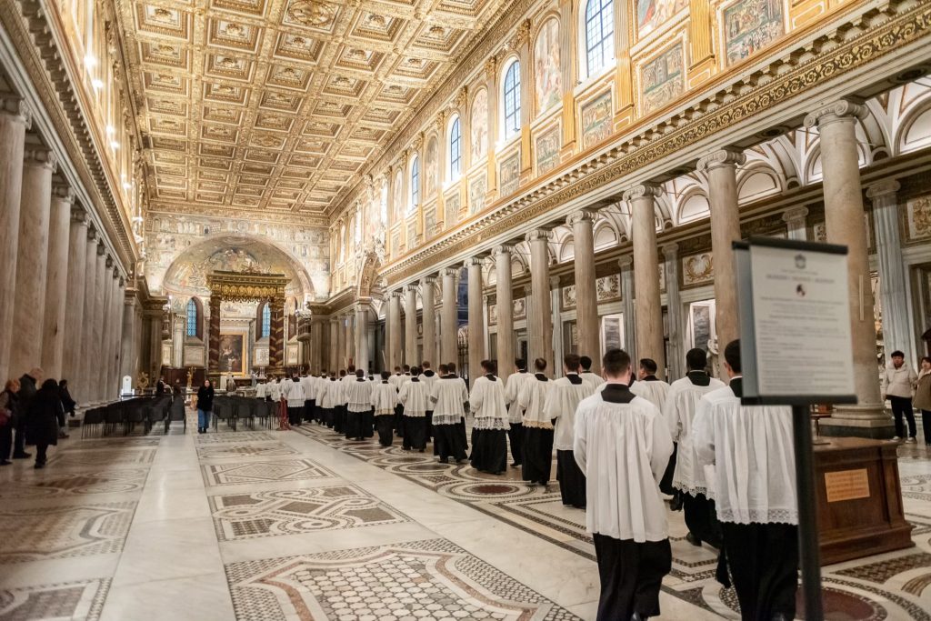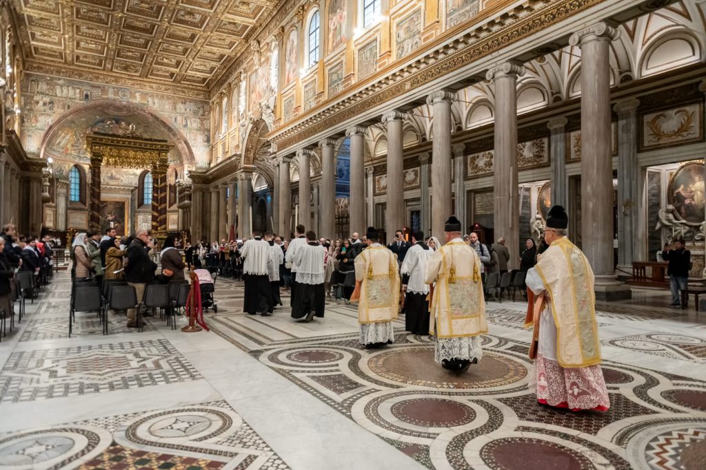 Venerdì 12, la giornata è iniziata presto per i nostri pellegrini: al canto delle litanie dei santi alle 7h30 abbiamo attraversato la Porta Santa della Basilica Liberiana. In questa Basilica di Santa Maria Maggiore dove siamo stati accolti per la Messa Solenne celebrata dal Superiore Generale all’Altare Papale, assistevano, in qualità di Diacono e Suddiacono, don Matteo Raffray e don Daniele Pinheiro, membri eletti del Consiglio Generale e rispettivamente superiori l’uno del distretto europeo e l’altro del distretto dell’America Latina. Il Seminario dell’Istituto ha curato con maestria il canto gregoriano per questa liturgia che resterà unica nella storia dell’IBP.